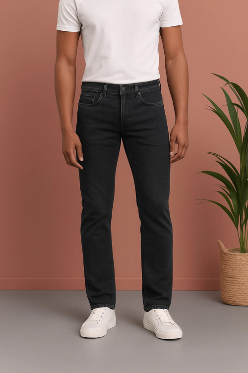 🖤 شلوار لی زغالی تیره راسته مردانه